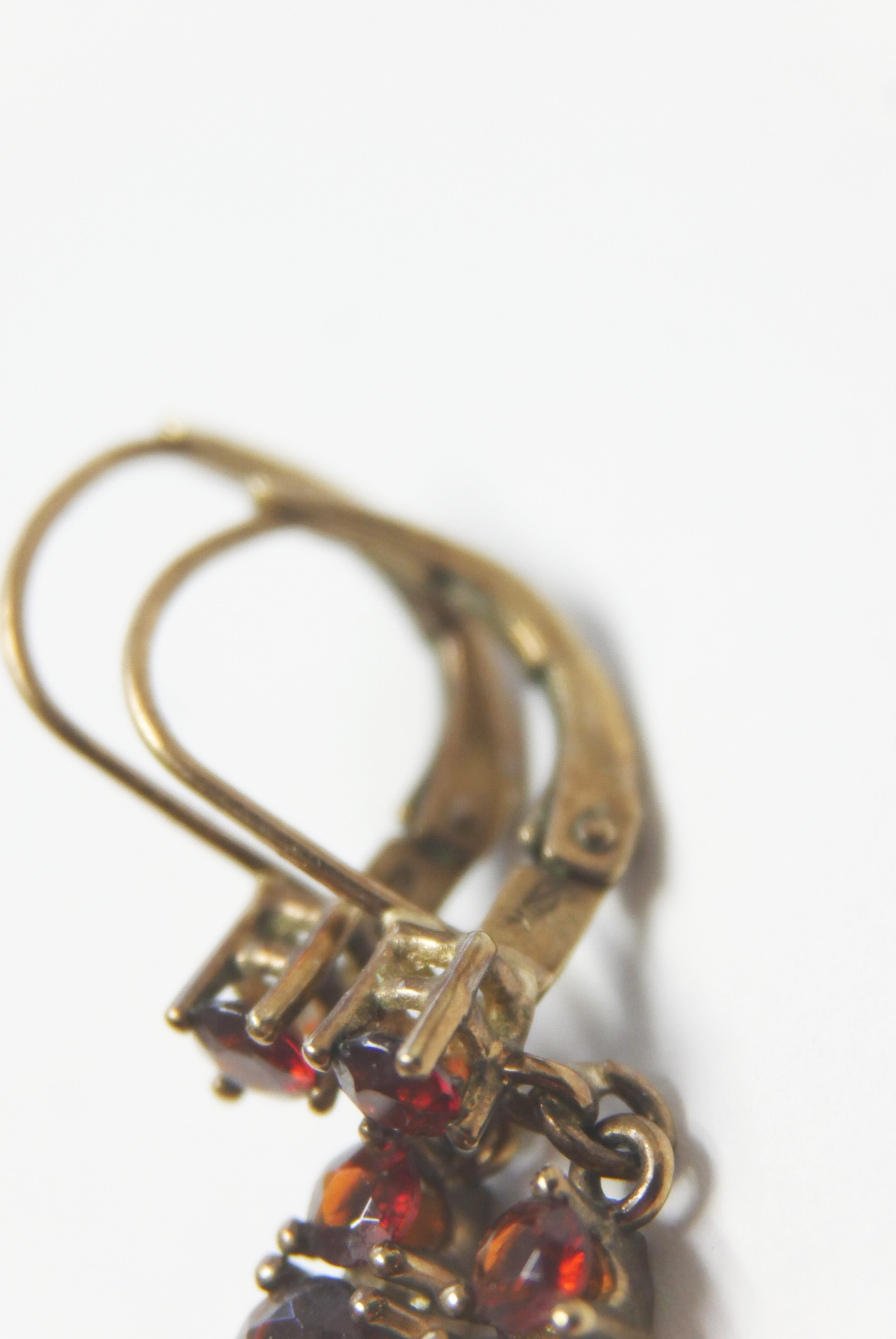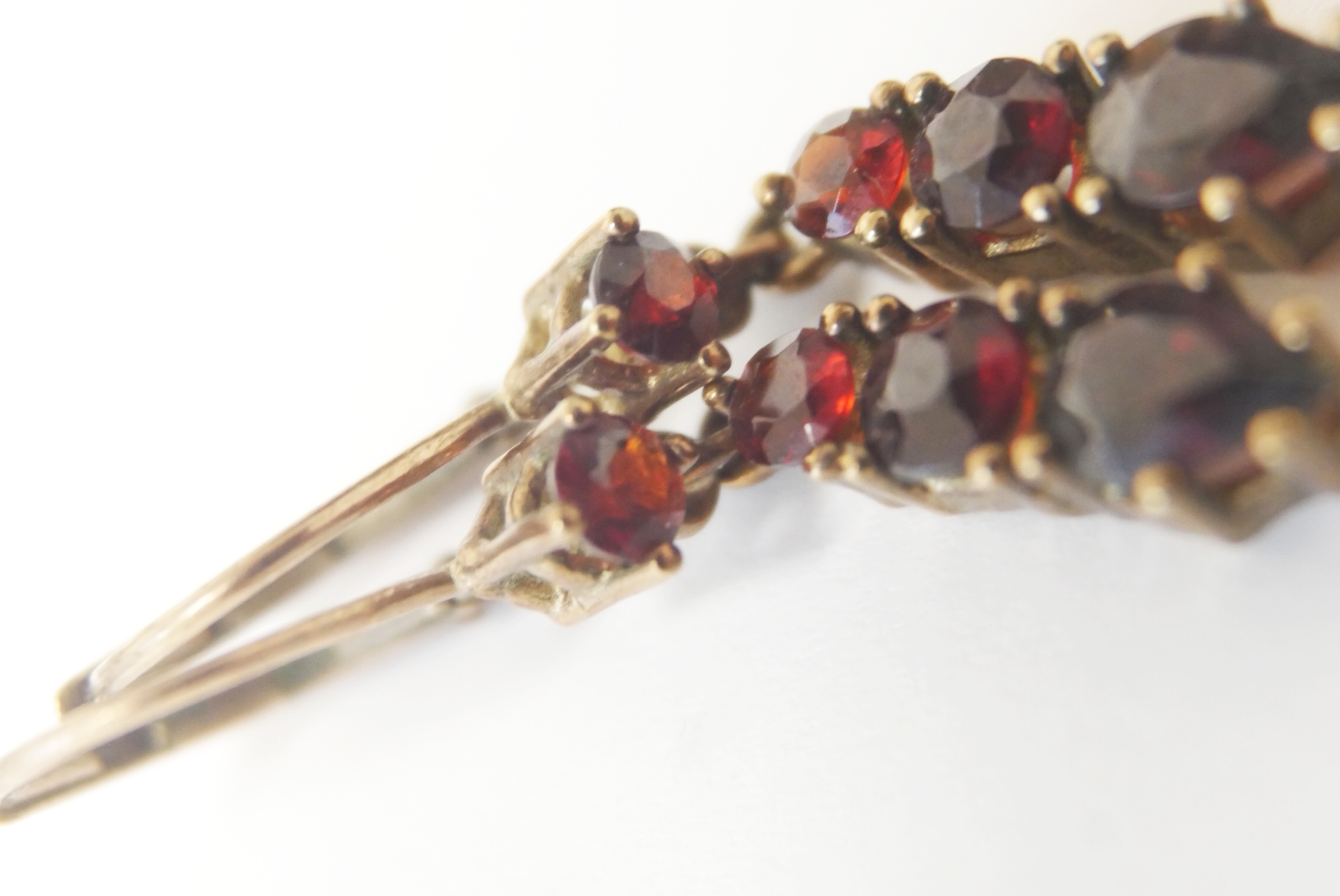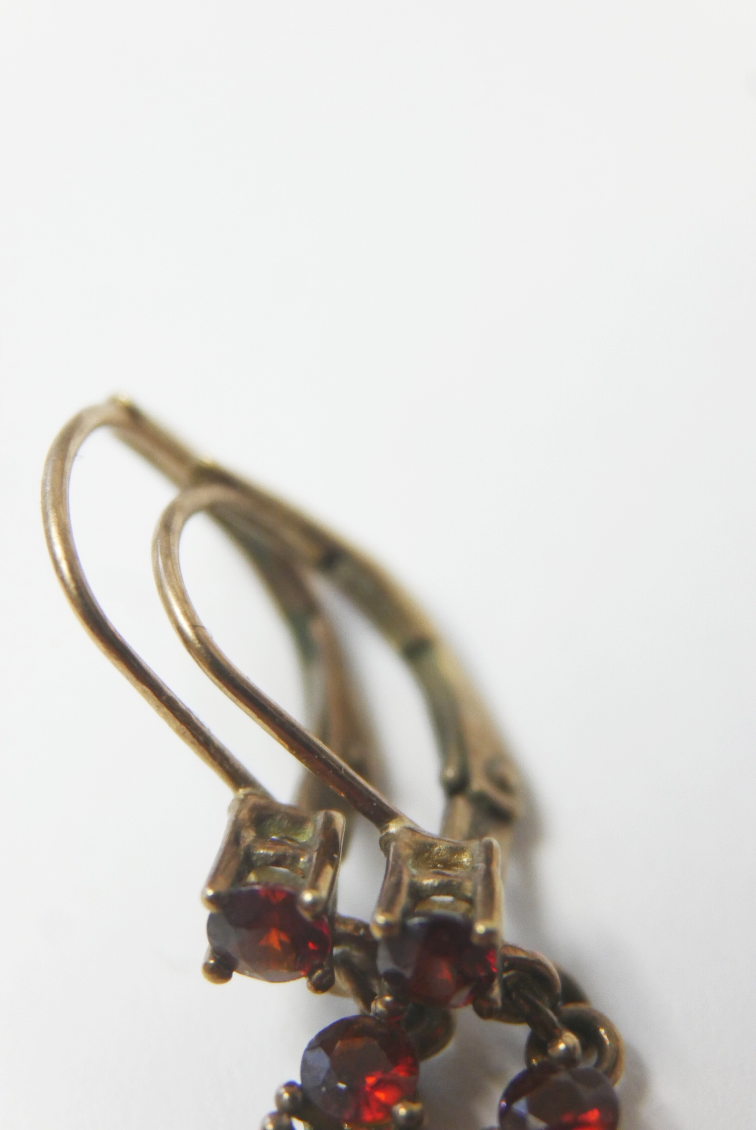 In diesem Paar Vintage Ohrhänger von Oma sind 5 kleine Granat untereinander eingearbeitet.