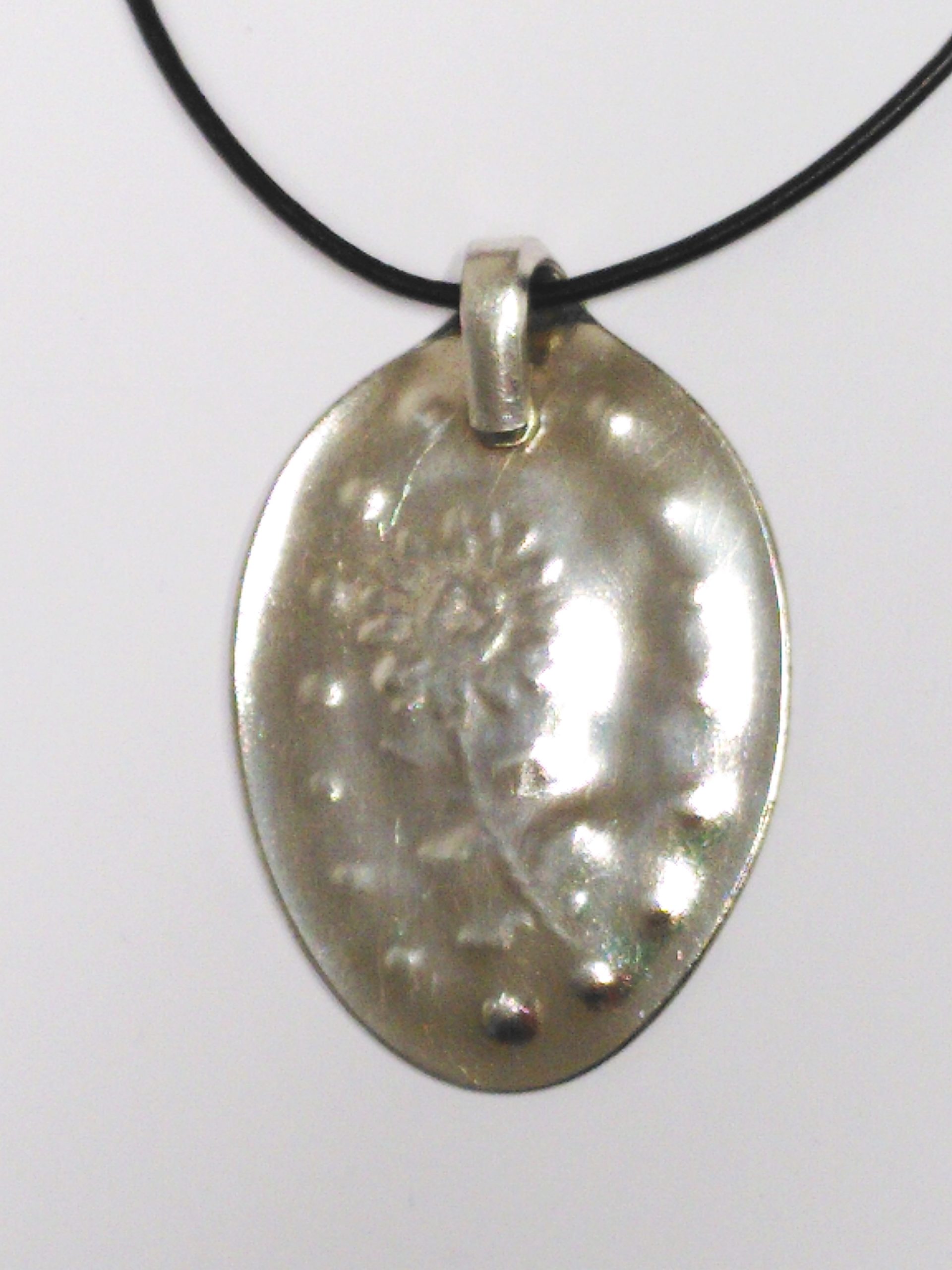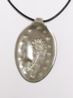 Dieser Besteckschmuck Blumen Anhänger, aus einem Löffel in Handarbeit gefertigter Löffelschmuck mit Lederband, ist ein herrliches Einzelstück Unikat für Ihr individuelles Auftreten.