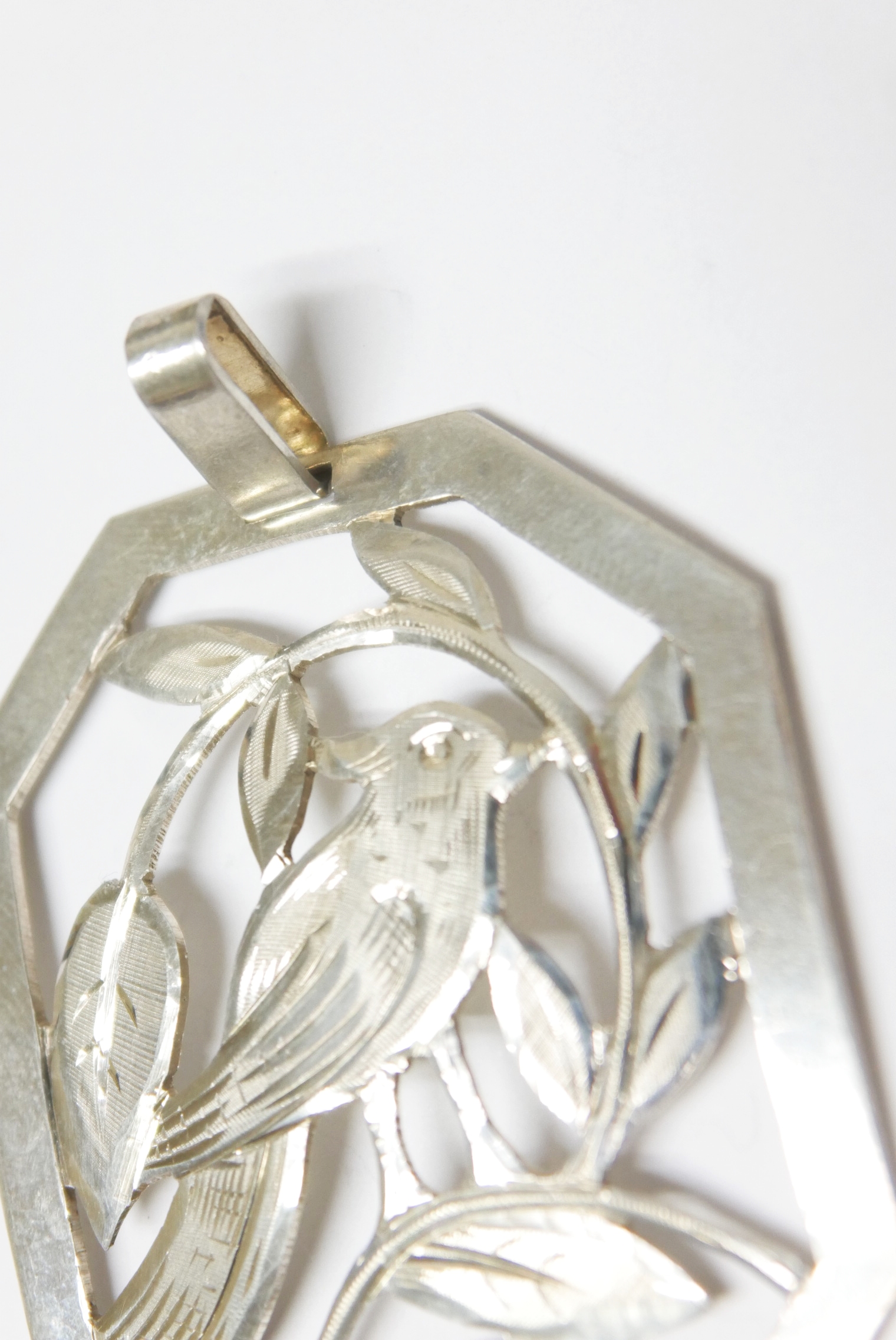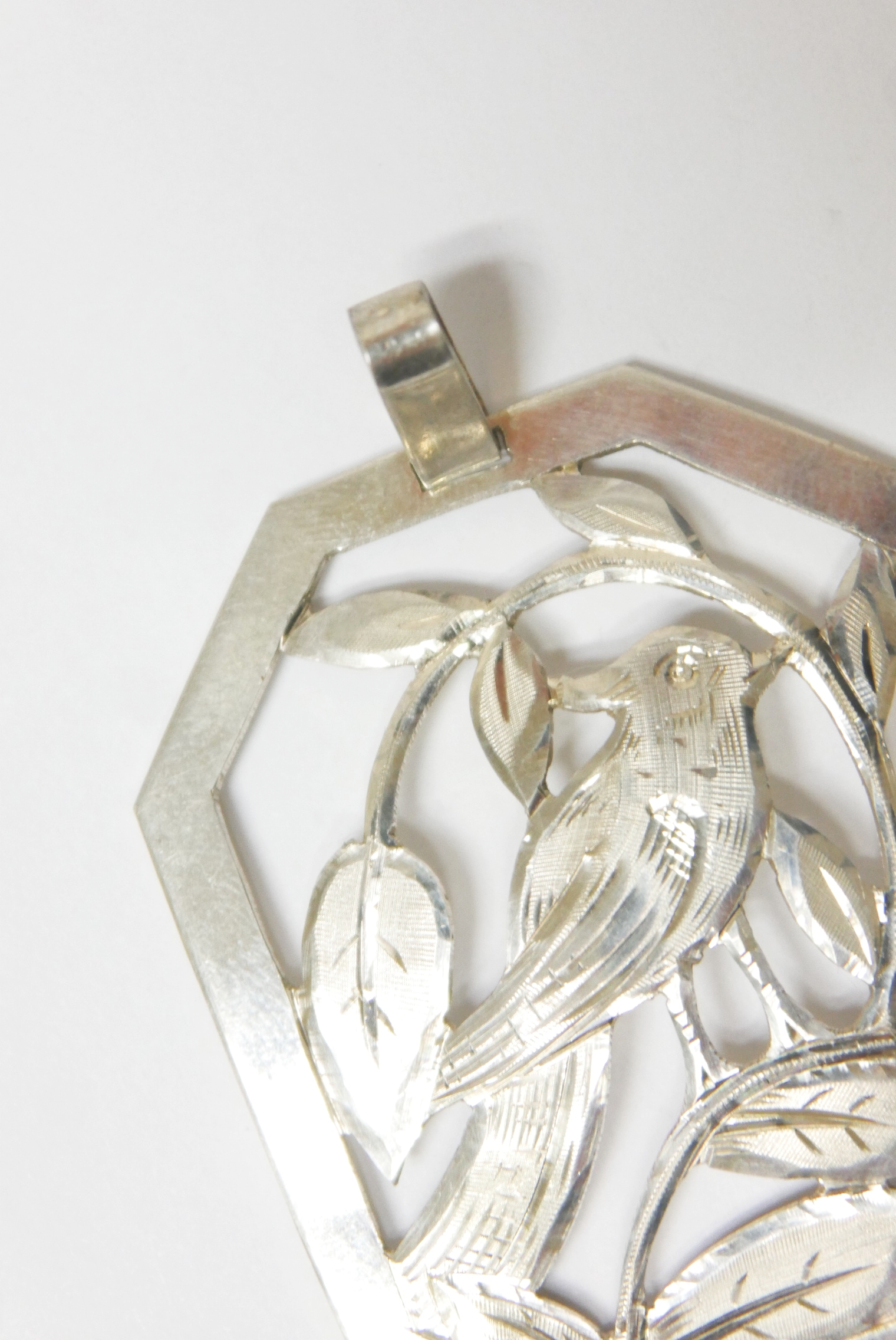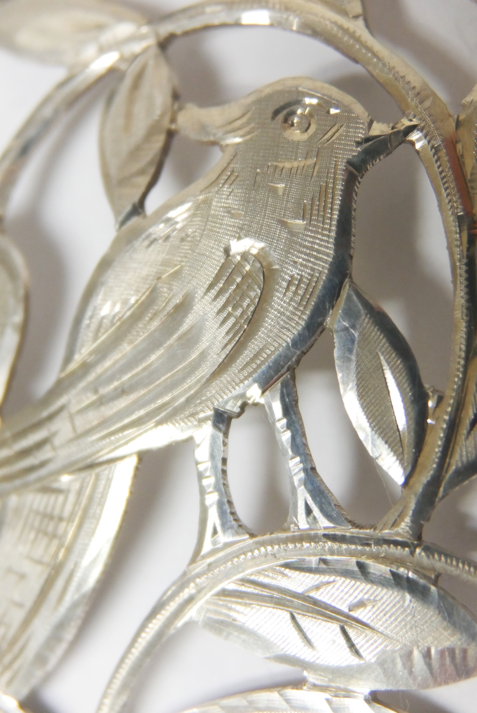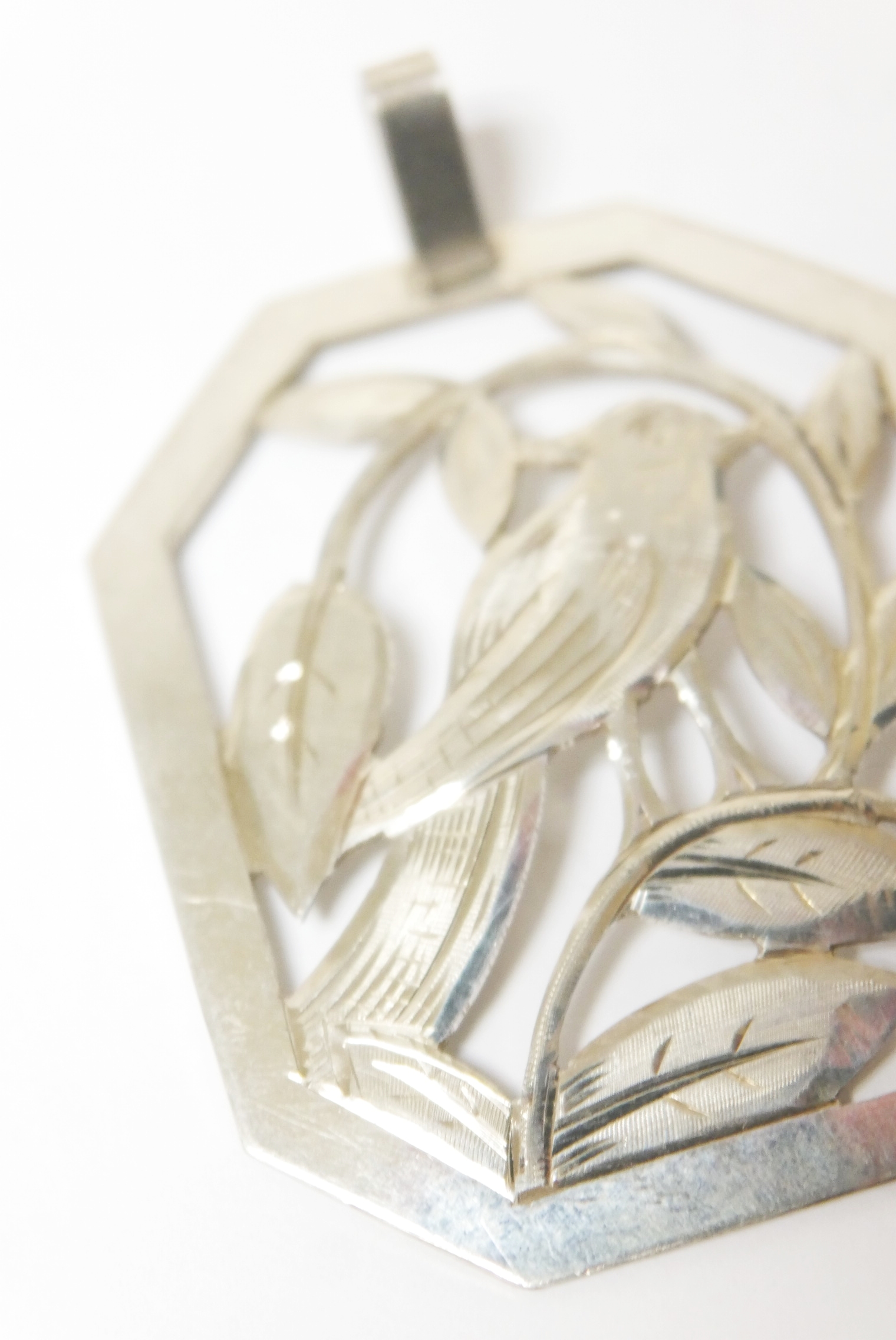 Das Design des Anhängers, in Handarbeit gefertigt, ist natürlich mit der Nachtigall im Blätterwald. Er fällt mit seiner Größe auf.