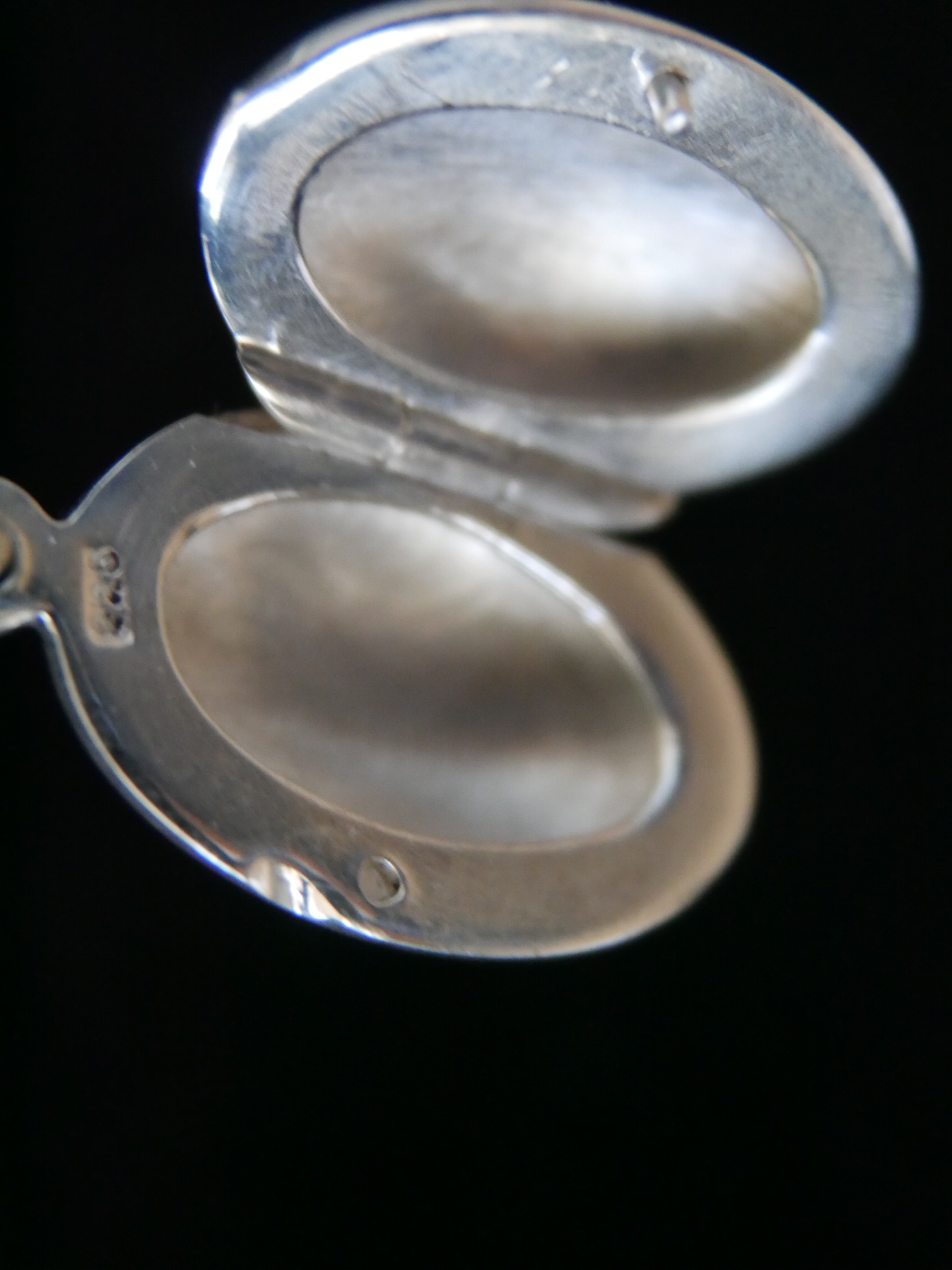 Das Besondere an diesem Anhänger ist das er geöffnet werden kann und durch einen Schnappverschluss verschlossen wird wie auf den Bildern zu sehen ist.