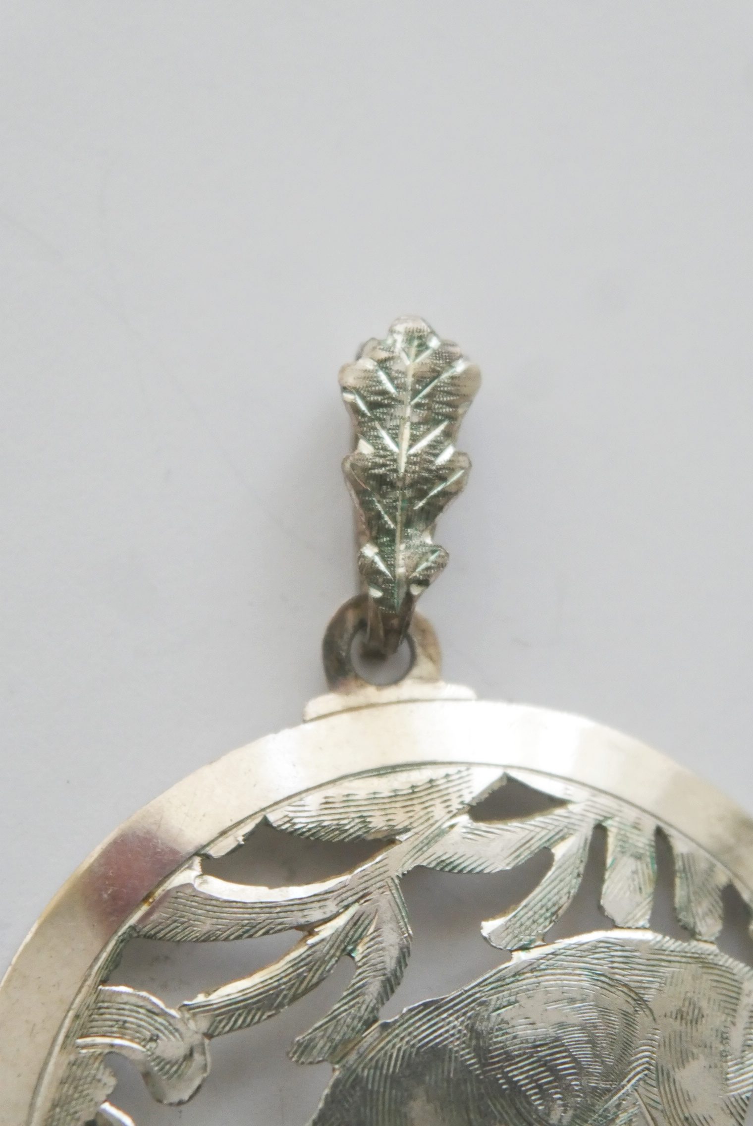 • Mit einer als Eichenlaub verzierten Öse für die Kette