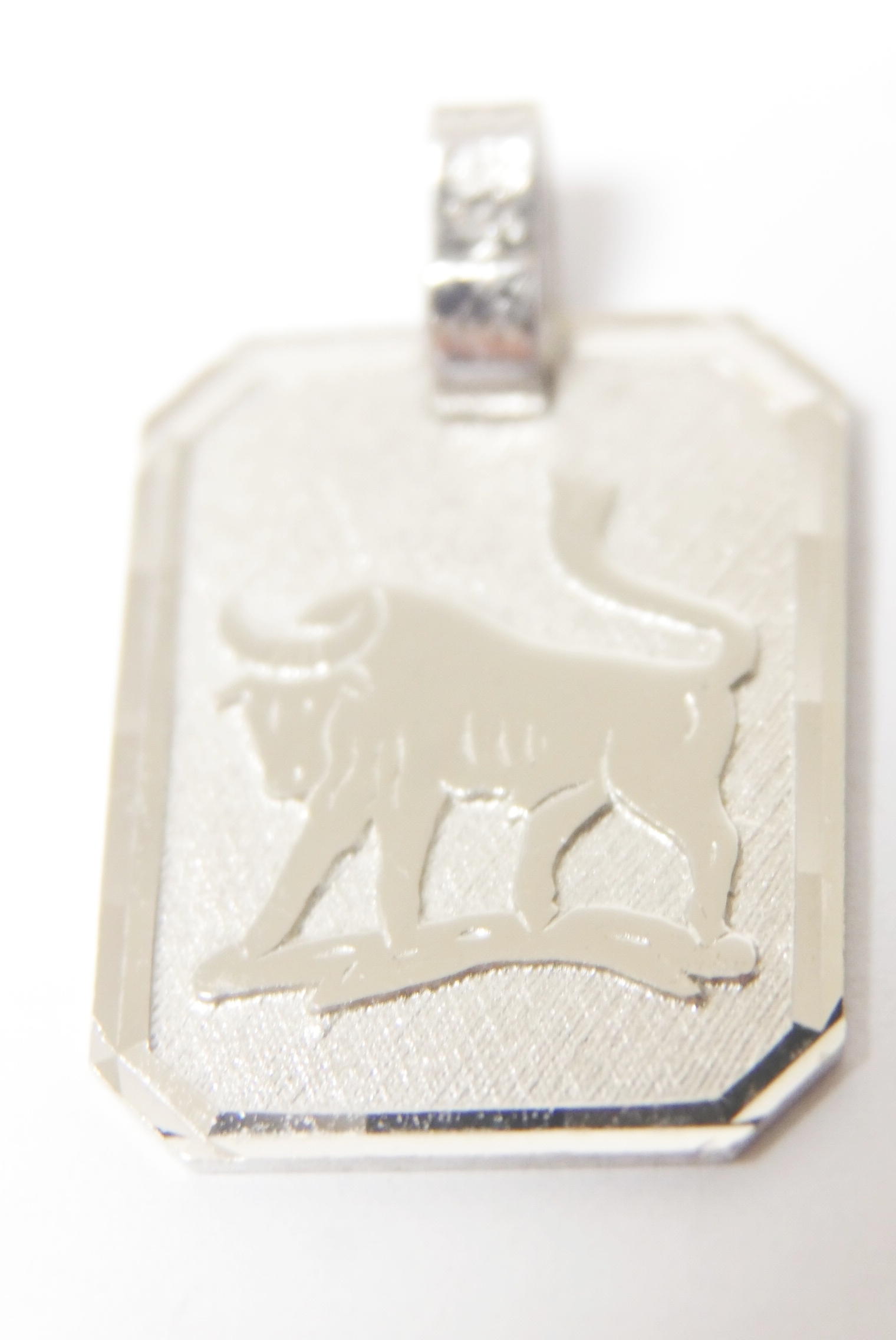 Dieser Anhänger aus Silber hat das Sternzeichen Stier.