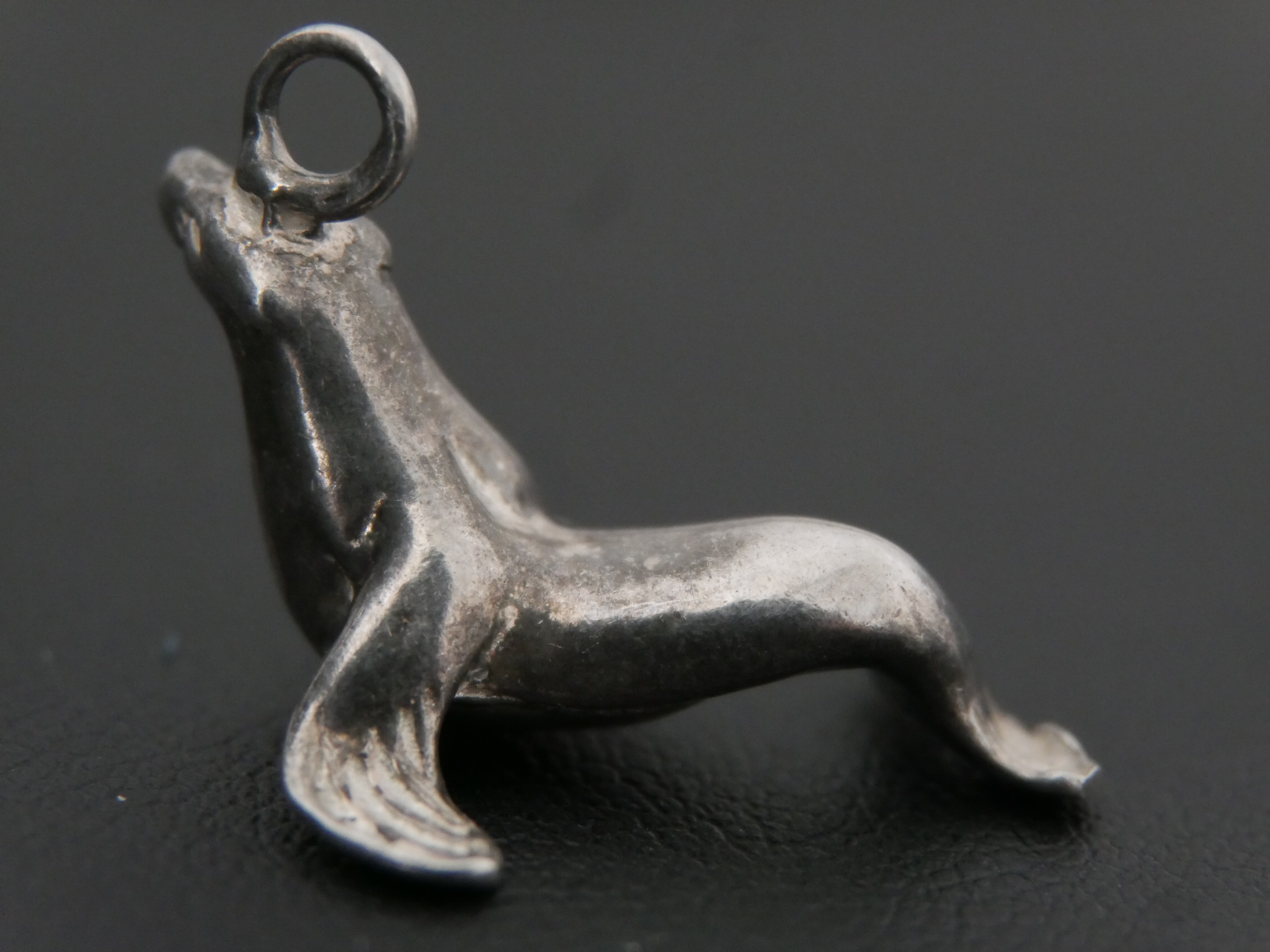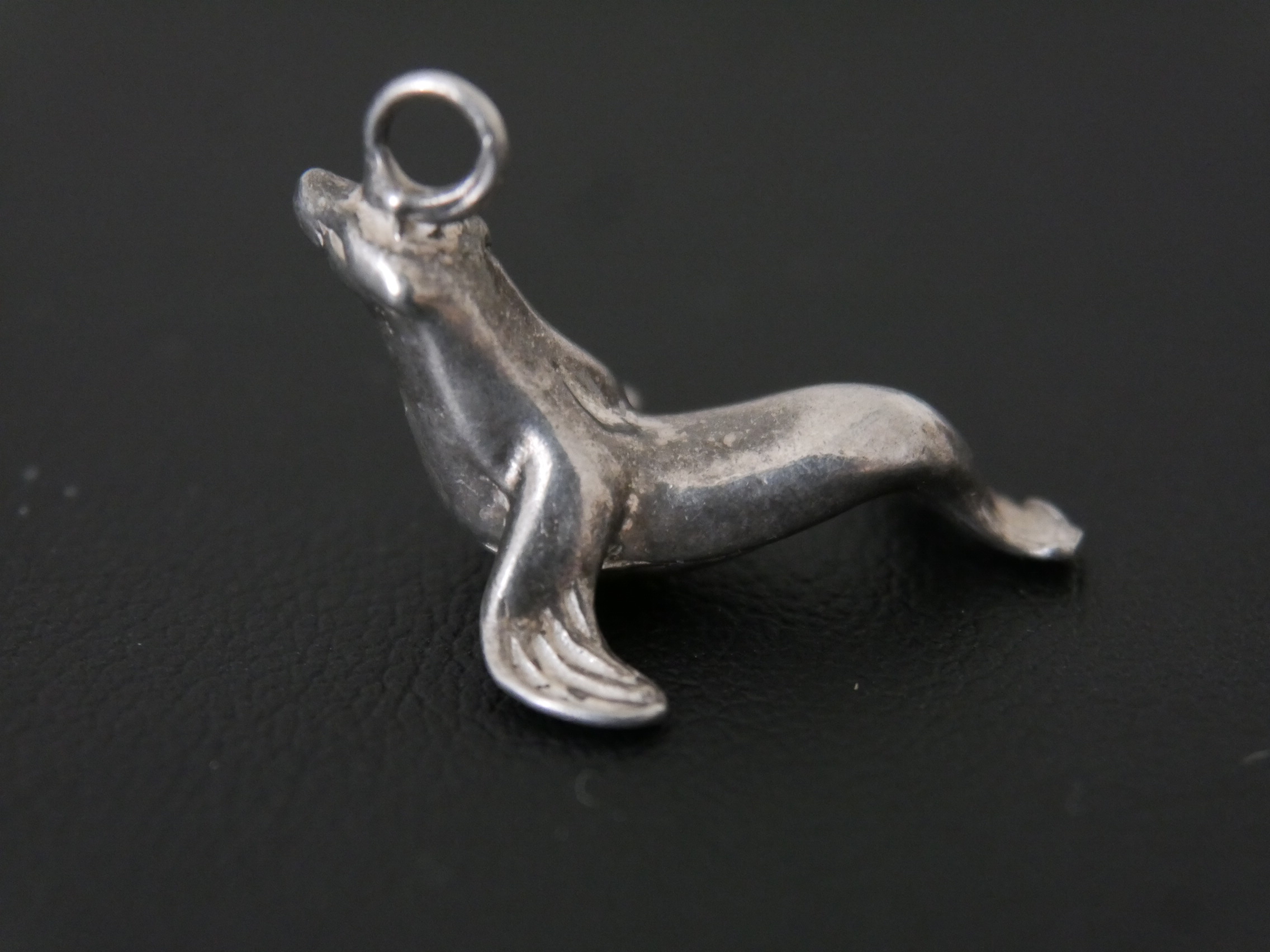 Dieser Seehund Anhänger ist aus Silber.