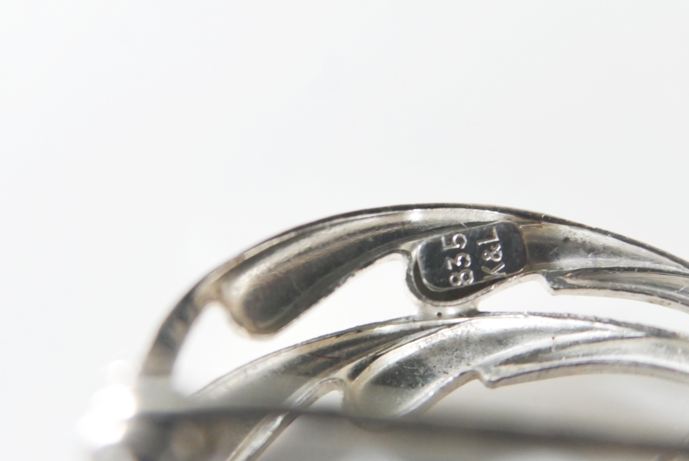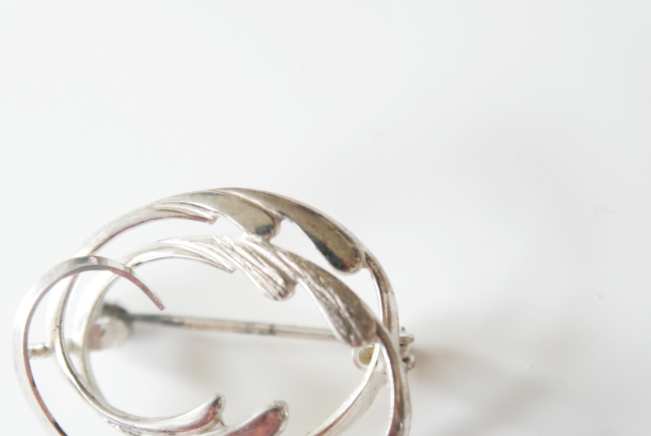 Eine wunderschöne Second-Hand Vintage Brosche fein gearbeitet in Form von Blätterranken im Jugendstil Look, vermutlich 60er Jahre, von K&L Kordes und Lichtenfels Silber 835.
