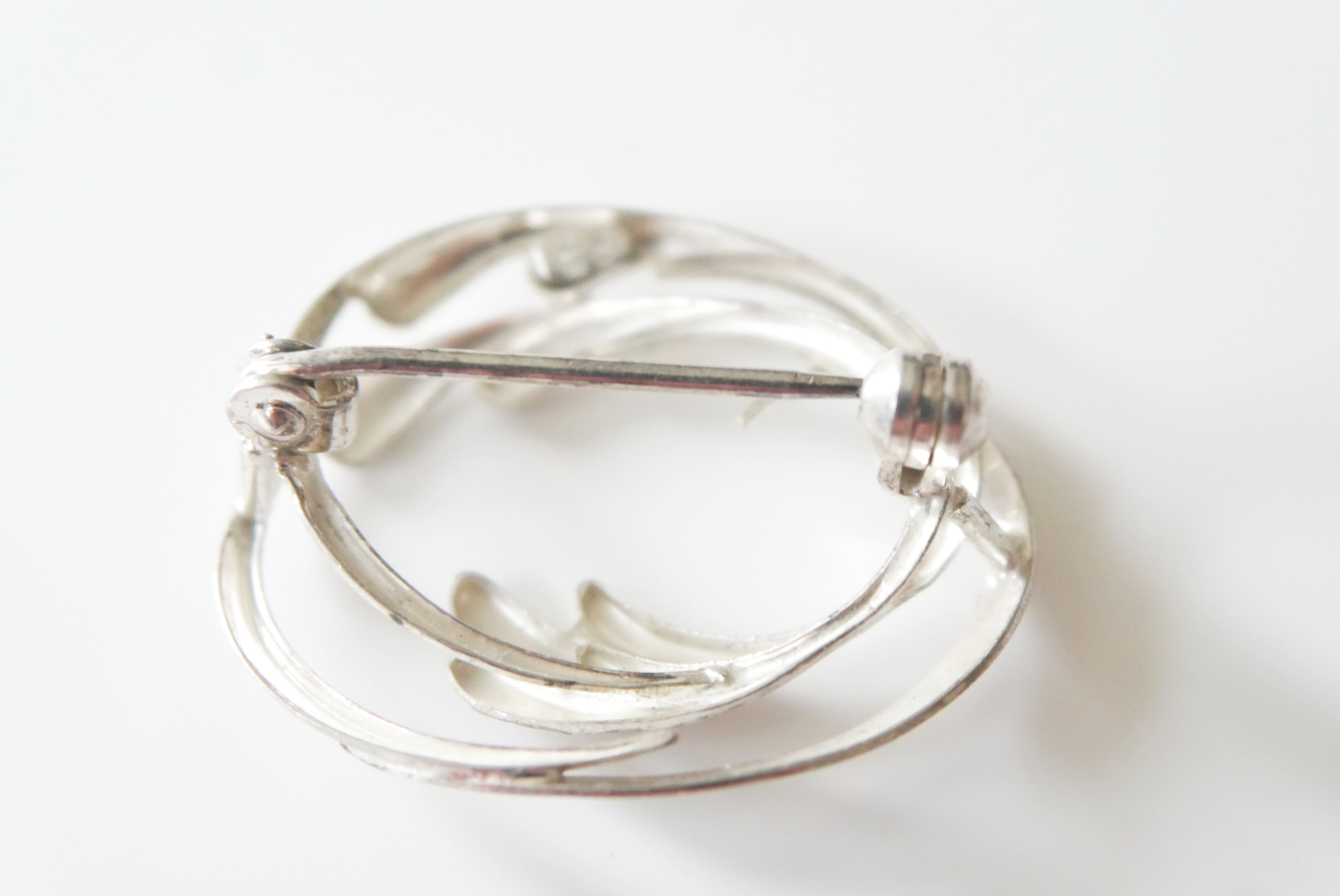 Vintage Brosche als Blüten Ranken in oval von K&L Pforzheim in Silber 835