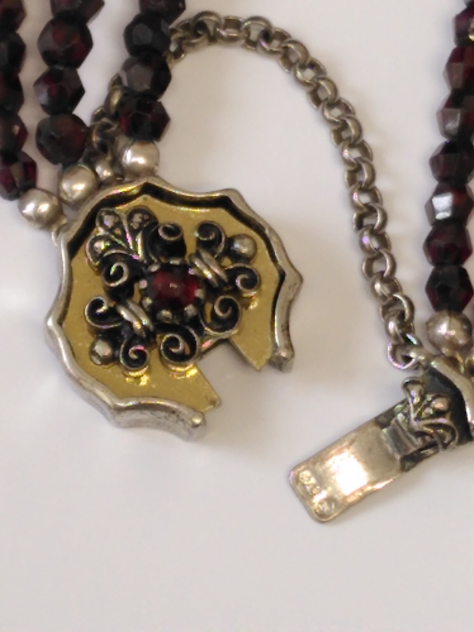 Original Vintage Trachten Schmuck Armband aus geschliffenen Granat mit Verschluß aus Silber
